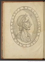 | [T91593] | Julius Caesar's bust in a medallion. In Gaius Iulius Caesar, Les Commentaires De Cesar Des Gverres De La Gavle ..., Blaise de Vigenère (translator), Paris: Abel L'Angelier (printer), Pierre Chevillot (printer), 1584 - 1586 (Paris, BnF) ◼ | printing: impression | page: figure | woodcut | paper | book decoration: illustration |  | | | | | | |