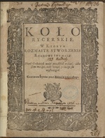 | [T86549] | Title-Page Border with Personifications of Virtues. In Bartosz Paprocki, Koło rycerskie w ktorym rozmaite stworzenia rozmowy swe maią: skąd człowiek może przykład wźąć, iako sam ma żyć, insze uczyć, y czego się wystrzegać, Raków: Sebastian Sternacki (printer attr.), [after 1579] (Cracow, MNK, BCzart), fol. A1r ◼ | printing: impression | page: marginalia and borders | woodcut | paper | book decoration: front matter |  | | | | | | |