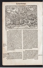 | [T29374] | Monogrammist MS (printmaker attr.), The Fifth Angel Sounding the Trumpet, the Bottomless Pit and the Plague of the Monstruous Locusts. In Biblij cžeská, Prague: Jiří Melantrich (printer), Bartoloměj Netolický (publisher), 1549 (Prague, NK ČR), fol. Dddd8r | printing: impression | page: figure | woodcut | paper | book decoration: illustration | | | | | | | |