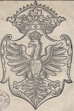 | [T90967] | White Eagle with Stephen Báthory's Coat of Arms. In Joachim Bielski, Naeniae in funere divi Stephani I Polonorvm regis, Cracow: Jakub Siebeneicher (printer), 1588 (Warsaw, BN), fol. A1v ◼ | printing: impression | page: figure | woodcut | paper | book decoration: illustration |  | | | | | | |
