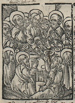 | [T20980] | Last Supper. In Żywot pana Jezu krysta ..., Baltazar Opec (compiler), Cracow: Jan Malecki (printer), Florian Ungler (printer), Jan Haller (publisher), 1522 (Cracow, BJ), fol. 90r ◼ | printing: impression | page: figure | woodcut | paper | book decoration: illustration |  | | | | | | |