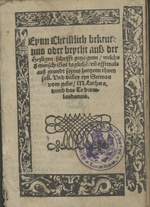 | [T88786] | Title page composition with figural borders. In Martin Luther, Eyn Christlich bekentnus oder beycht auß der Heyligen schrifft getzogenn welchs d' mensch Got taglichẽ vñ offtmals auß grundt seynes hertzenn thuen soll, Wrocław: Adam Dyon (printer), 1525 (New Haven, CT, Beinecke Rare Book and Manuscript Library), fol. A1r ◼ | printing: impression | | | | |  | | | | | | |