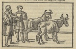 | [T89287] | Florentz is ordered to take two cattle to the butcher. In Ein schone vnd kurtzweylige Histori von Keyser Octauiano seinem weyb vnd zweyen Sünnen, Wilhelm Salzmann (translator), Cologne: Johann von Aich (printer), 1537 (Vatican, BAV), fol. F2r | printing: impression | page: figure | woodcut | paper | book decoration: illustration | | | | | | | |