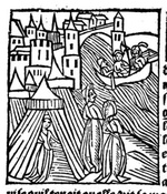 | [T89439] | Florent crosses the river Seine to meet Marcebilla. In Lyon et Florent, Lyon: Martin Havard (printer), 1500 (Lyon, Bibliothèque municipale de Lyon), fol. H2r ◼ | printing: impression | page: figure | woodcut | paper | book decoration: illustration | ![]() | ||||||