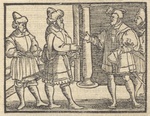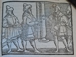 | [T89606] | Hans Brosamer (printmaker), Princes and lords receive letters from the King of France asking for help. In Ein schöne vnd kurtzweilige History vonn Keiser Octauiano, Wilhelm Salzmann (translator), Frankfurt am Main: Weigand Han (printer), ca. 1558-1560 (Lüneburg, Ratsbücherei), fol. E3r ◼ | printing: impression | page: figure | woodcut | paper | book decoration: illustration |  | | | | | | |