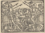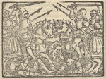 | [T89733] | Hans Brosamer (printmaker), Turks defeated by Florens and his knights. In Ein schöne vnd kurtzweilige History vonn Keiser Octauiano, Wilhelm Salzmann (translator), Frankfurt am Main: Heirs of Weigand Han (printer attr.), 1564 (Stockholm, KB), fol. 76v ◼ | printing: impression | page: figure | woodcut | paper | book decoration: illustration |  | | | | | | |