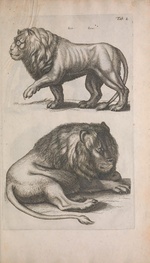 | [T89963] | Tab. L: Lion (Leo, Löw). In Jan Jonston, Historiae Naturalis De Quadrupedibus Libri. Cum aeneis figuris ..., Amsterdam: Jan Janszoon Schipper (printer), 1657 (Washington, DC, Smithsonian Libraries) ◼ | printing: impression | page: figure | engraving | paper | book decoration: illustration | ![]() | ||||||