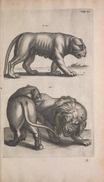 | [T89965] | Tab. LI: Lion (Leoena, Leo). In Jan Jonston, Historiae Naturalis De Quadrupedibus Libri. Cum aeneis figuris ..., Amsterdam: Jan Janszoon Schipper (printer), 1657 (Washington, DC, Smithsonian Libraries) ◼ | printing: impression | page: figure | engraving | glass | book decoration: illustration | ![]() | ||||||