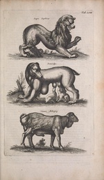 | [T90057] | Tab. LVIII (Lupus Scythicus, Semivulpa, Veruex Aethiopicus). In Henricus Ruysch, Theatrum Universale Omnium Animalium Piscium, Avium, Quadrupedum, Exanguium, Aquaticorum, Insectorum, Et Angium, CCLX, Tabulis Ornatum, Amsterdam: 1718 (Vienna, ÖNB) ◼ | printing: impression | page: figure | engraving | paper | book decoration: illustration | ![]() | ||||||