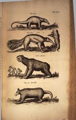 | [T90078] | Tab. LXII (Tamandua, Tamandua guacu, Ai sive ignavis, Tatu seu Armadillo). In Henricus Ruysch, Theatrum Universale Omnium Animalium Piscium, Avium, Quadrupedum, Exanguium, Aquaticorum, Insectorum, Et Angium, CCLX, Tabulis Ornatum, Amsterdam: 1718 (Vienna, ÖNB) ◼ | printing: impression | page: figure | engraving | paper | book decoration: illustration |  | | | | | | |