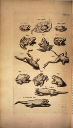 | [T90080] | Tab. LXXV: Frogs and Toads. In Henricus Ruysch, Theatrum Universale Omnium Animalium Piscium, Avium, Quadrupedum, Exanguium, Aquaticorum, Insectorum, Et Angium, CCLX, Tabulis Ornatum, Amsterdam: 1718 (Vienna, ÖNB) ◼ | printing: impression | page: figure | engraving | paper | book decoration: illustration | ![]() | ||||||