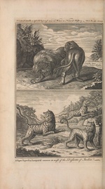 | [T90231] | Lions, Tigers, Leopard. In Navigantium atque itinerantium bibliotheca, or, A complete collection of voyages and travels, John Harris (compiler), 1744 ◼ | printing: impression | page: figure | etching | paper | book decoration: illustration | ![]() | ||||||