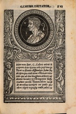 | [T83364] | Caesar in a Border with Putti, Sphinxes and Cornucopias. In Andrea Fulvio, Illustrium Imagines, Rome: Giacomo Mazzocchi (printer), 15 November 1517 (Munich, BSB), fol. XVIr ◼ | printing: impression | page: figure | woodcut, white‑line woodcut | paper | book decoration: illustration | ![]() | ||||||