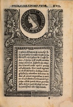 | [T83365] | Julia (daughter of Caesar) in a Border with Sphinxes and Garland. In Andrea Fulvio, Illustrium Imagines, Rome: Giacomo Mazzocchi (printer), 15 November 1517 (Munich, BSB), fol. XVIIr ◼ | printing: impression | page: figure | woodcut, white‑line woodcut | paper | book decoration: illustration | ![]() | ||||||