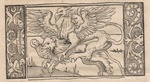 | [T91431] | Griffin takes the lioness and Lyon to an island (Frölich). Part of Set for narrative on Kaiser Octavian (Frölich) | printing: matrix | wood | tool |