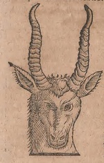 | [T41587] | Saiga Antelope (Colon) Head. In Conrad Gessner, Conradi Gesneri Medici Tigvrini Historiae Animalivm Liber Primvs De quadrupedibus viuiparis... Editio secunda ..., Frankfurt am Main: Robert Cambier (printer), 1602 (Washington, DC, Smithsonian Libraries), p. 362 ◼ | printing: impression | page: figure | woodcut | paper | book decoration: illustration |  | | | | | | |