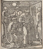 | [T32680] | Medical Examination (beginning of Nauka barwierzka). In O ziolach y o moczy gich : O paleniu wodek z ziol ; O Oleykoch przyprawianiu ..., Stefan Falimirz (translator), Cracow: Florian Ungler (printer), 24 December 1534 (Warsaw, BN), fol. 95v ◼ | printing: impression | page: figure | woodcut | paper | book decoration: front matter |  | | | | | | |