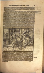 | [T92038] | Potiphar's Wife Trying to Seduce Joseph. In Flavius Josephus, Flauij Josephi ... Historien vnd Bücher: von alten jüdischen Geschichten, Conrad Lautenbach (translator), Strasbourg: Theodosius Rihel (printer), 1574 (Munich, BSB), fol. 21r ◼ | printing: impression | page: figure | woodcut | paper | book decoration: illustration |  | | | | | | |