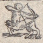 | [T32708] | Sagittarius. In O ziolach y o moczy gich : O paleniu wodek z ziol ; O Oleykoch przyprawianiu ..., Stefan Falimirz (translator), Cracow: Florian Ungler (printer), 24 December 1534 (Warsaw, BN), fol. 50r ◼ | printing: impression | page: figure | woodcut | paper | book decoration: illustration |  | | | | | | |