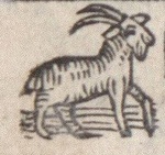 | [T32707] | Capricorn. In O ziolach y o moczy gich : O paleniu wodek z ziol ; O Oleykoch przyprawianiu ..., Stefan Falimirz (translator), Cracow: Florian Ungler (printer), 24 December 1534 (Warsaw, BN), fol. 50r ◼ | printing: impression | page: figure | woodcut | paper | book decoration: illustration |  | | | | | | |