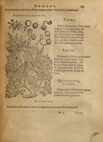 | [T69017] | Indian Thornapple (Nux metella). In Pietro Andrea Mattioli, De Plantis Epitome vtilissima Petri Andreae Matthioli Senensis, Frankfurt am Main: Johann Feyerabend (printer), 1586 (Bamberg, SBB), p. 175 ◼ | printing: impression | page: figure | woodcut | paper | book decoration: illustration |  | | | | | | |