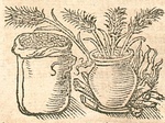| [T69876] | Bag of barley. In Pedanius Dioscorides, Pedanii Dioscoridis Anazarbei De Medicinali Materia Libri Sex, Frankfurt am Main: Christian Egenolff (printer), March 1543 (Munich, BSB), p. 229 ◼ | printing: impression | page: figure | woodcut | paper | book decoration: illustration |  | | | | | | |