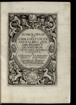 | [T87655] | Title-page Border. In Symbolorvm & Emblematvm Animalibvs Qvadrvpedibvs ... Centuria Altera ..., Nuremberg: 1595 (Munich, BSB) ◼ | printing: impression | page: marginalia and borders | engraving | paper | book decoration: front matter | ![]() |