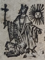 | [T41688] | Crispin Scharffenberg (printmaker attr.), Personification of the Sun (Sol, Słońce, Sonnem). In Herbarz to iest, Zioł tutecznych, postronnych, y Zamorskich opisanie..., Marcin Siennik (compiler), Cracow: Mikołaj Szarfenberger (printer), 1568 (Warsaw, BN), fol. 429 ◼ | printing: impression | page: figure | woodcut | paper | book decoration: illustration |  | | | | | | |