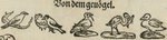 | [T57098] | Five Birds. In Johannes Dryander, Der gantzen Artzenei gemeyner Inhalt, Wes einem Artzt, bede in der Theoric vnd Practic zusteht, Frankfurt am Main: Christian Egenolff (printer), 1542 (Munich, BSB), fol. 28v ◼ | printing: impression | page: figure | woodcut | paper | book decoration: illustration |  | | | | | | |