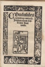 | [T88448] | Title page composition with St Jerome. In Andreas Rudolf Karlstadt, Conclusio[n]es carolostady contra D. Joha[n]nem Eccum Lipsie xxuij Junij tuende, Wrocław: Adam Dyon (printer attr.), 1519 (Wrocław, BUWr), fol. A1r ◼ | printing: impression | page: figure | woodcut | paper | book decoration: front matter |  | | | | | | |