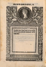 | [T83479] | Drusus son of Germanicus in a Border with Putti and Garland. In Andrea Fulvio, Illustrium Imagines, Rome: Giacomo Mazzocchi (printer), 15 November 1517 (Munich, BSB), fol. XXXIIIIv ◼ | printing: impression | page: figure | white‑line woodcut, woodcut | paper | book decoration: illustration |  | | | | | | |