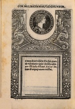 | [T83367] | Cornelia in a Border with Medallions and Cornucopias. In Andrea Fulvio, Illustrium Imagines, Rome: Giacomo Mazzocchi (printer), 15 November 1517 (Munich, BSB), fol. XVIIIv ◼ | printing: impression | page: figure | white‑line woodcut, woodcut | paper | book decoration: illustration |  | | | | | | |
