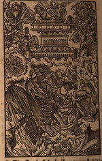 | [T79326] | The Second Angel Sounding the Trumpet: a Great Burning Mountain Cast into the Sea. In Das new Testament Teütsch, Nuremberg: Jobst Gutknecht (printer), 1535 (Vienna, ÖNB), fol. 147r ◼ | printing: impression | page: figure | woodcut | paper | book decoration: illustration |  | | | | | | |