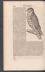| [T88834] | Hawk (De Aesalone). In Conrad Gessner, Conradi Gesneri ... Historiae animalium liber III., qui est de avium natura, Zürich: Christoph Froschauer (printer), 1555 (Zürich, ZB), p. 44 ◼ | printing: impression | page: figure | woodcut | paper | book decoration: illustration |  | | | | | | |