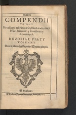 | [T28480] | White Eagle. In Teodor Zawacki, Compendivm To iest Krotkie Zebranie wszytkich a wszytkich Praw, Statutow y Constytuciy Koronnych ..., Cracow: Szymon Kempini (printer), 1614 (Warsaw, BN) ◼ | printing: impression | page: figure | woodcut | paper | book decoration: front matter |  | | | | | | |