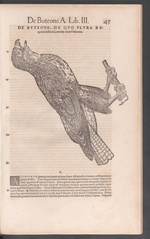 | [T88835] | Buzzard (De Buteone). In Conrad Gessner, Conradi Gesneri ... Historiae animalium liber III., qui est de avium natura, Zürich: Christoph Froschauer (printer), 1555 (Zürich, ZB), p. 45 ◼ | printing: impression | page: figure | woodcut | paper | book decoration: illustration | ![]() | ||||||