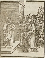 | [T80307] | Pilate Washing His Hands. In Johannes Hoffmeister, Postylla cžeska Totiž Kázanij na Euangeliá, Prostějov: Johann Günther (printer), 2 May 1551 (Prague, NK ČR), fol. CXXXIXv ◼ | printing: impression | page: figure | woodcut | paper | book decoration: illustration |  | | | | | | |